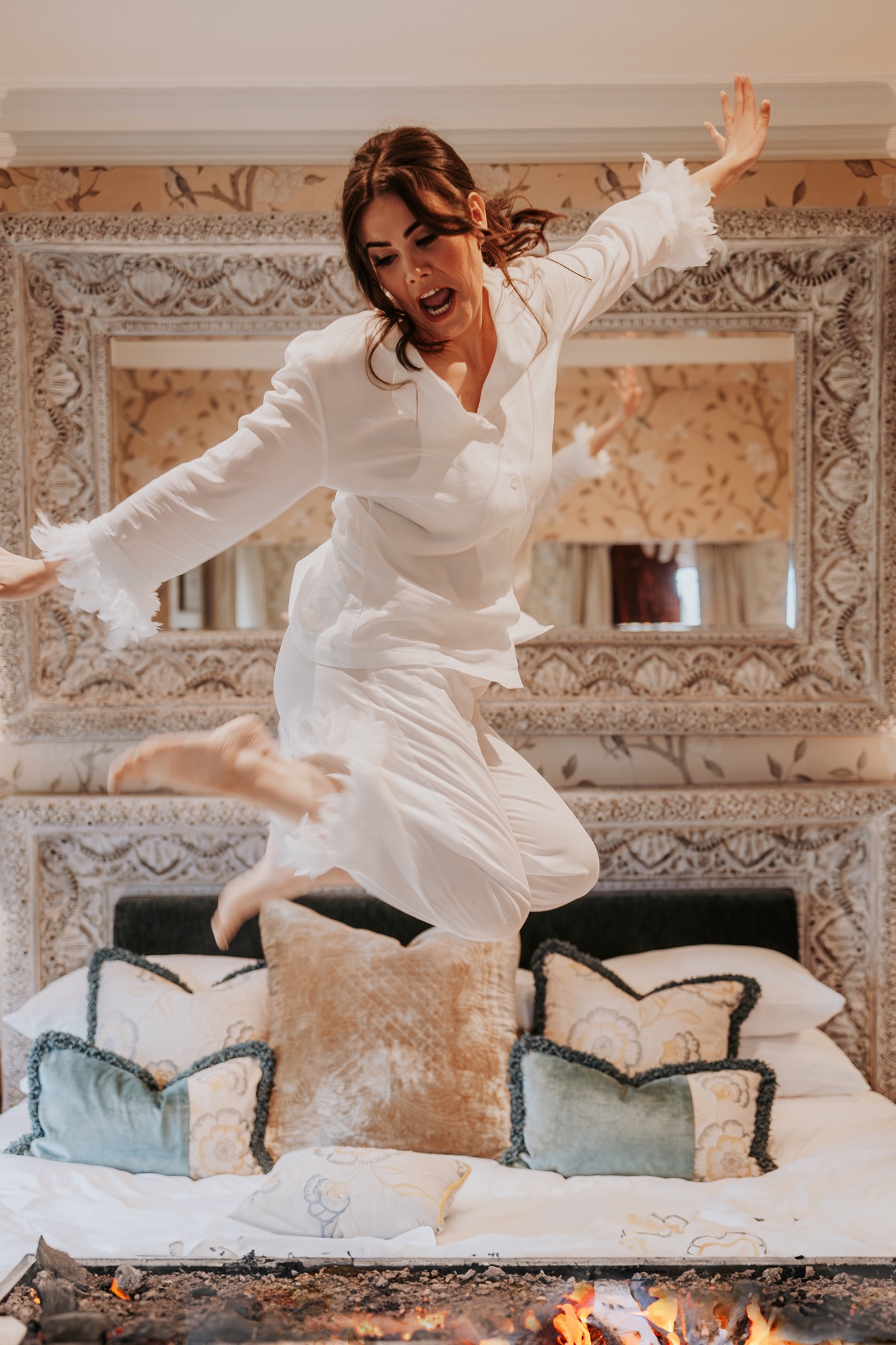 Rachel chose to jump over hot coals at the end of her bed, to celebrate, FINALLY finding the one. A moment that marked huge progression in life and love. Symbolic, whilst powerful!