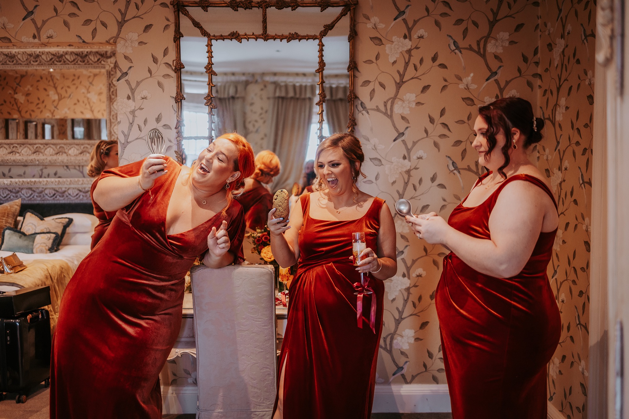 A full-on bake off moment unfolded with the bridesmaids, resulting in delicious cookies and flour all over!
