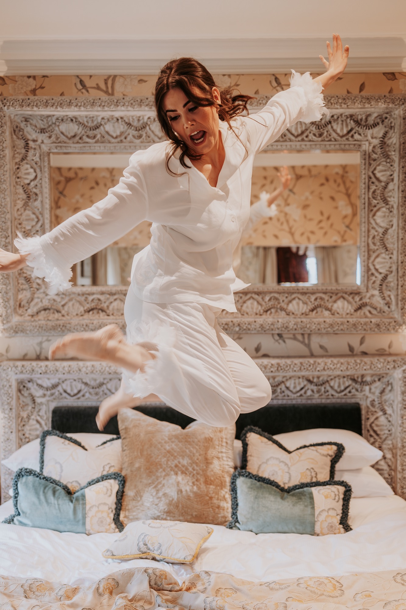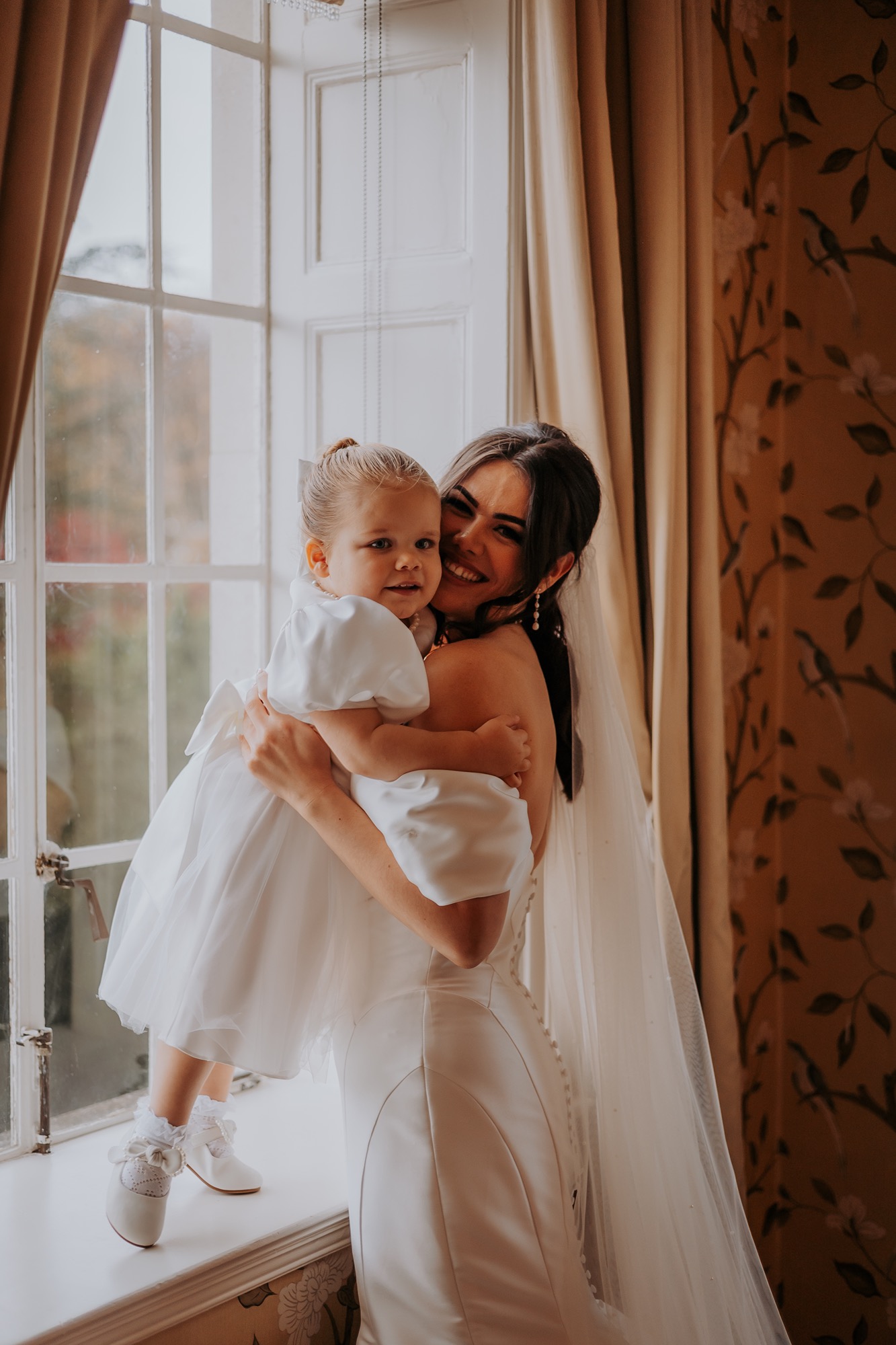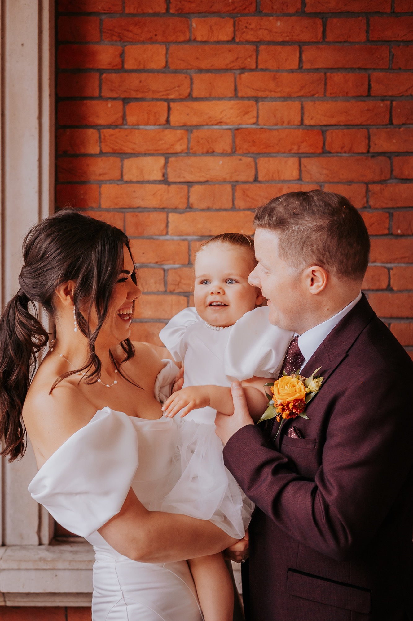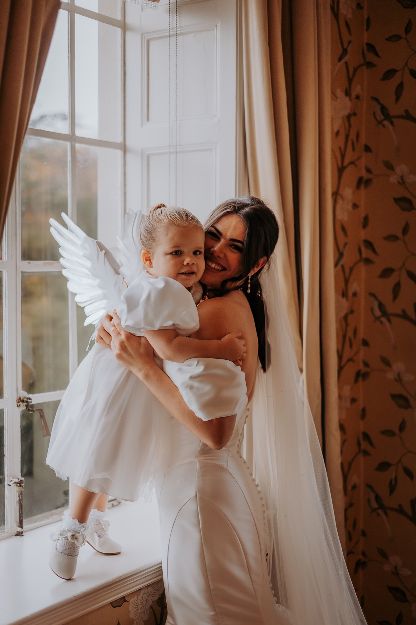 The couple daughter arrived with wings through the bridal suites window, sprinkling a little calm and delight through the fun filled wedding morning. Not for the faint hearted, but genuinely a priceless moment in time...